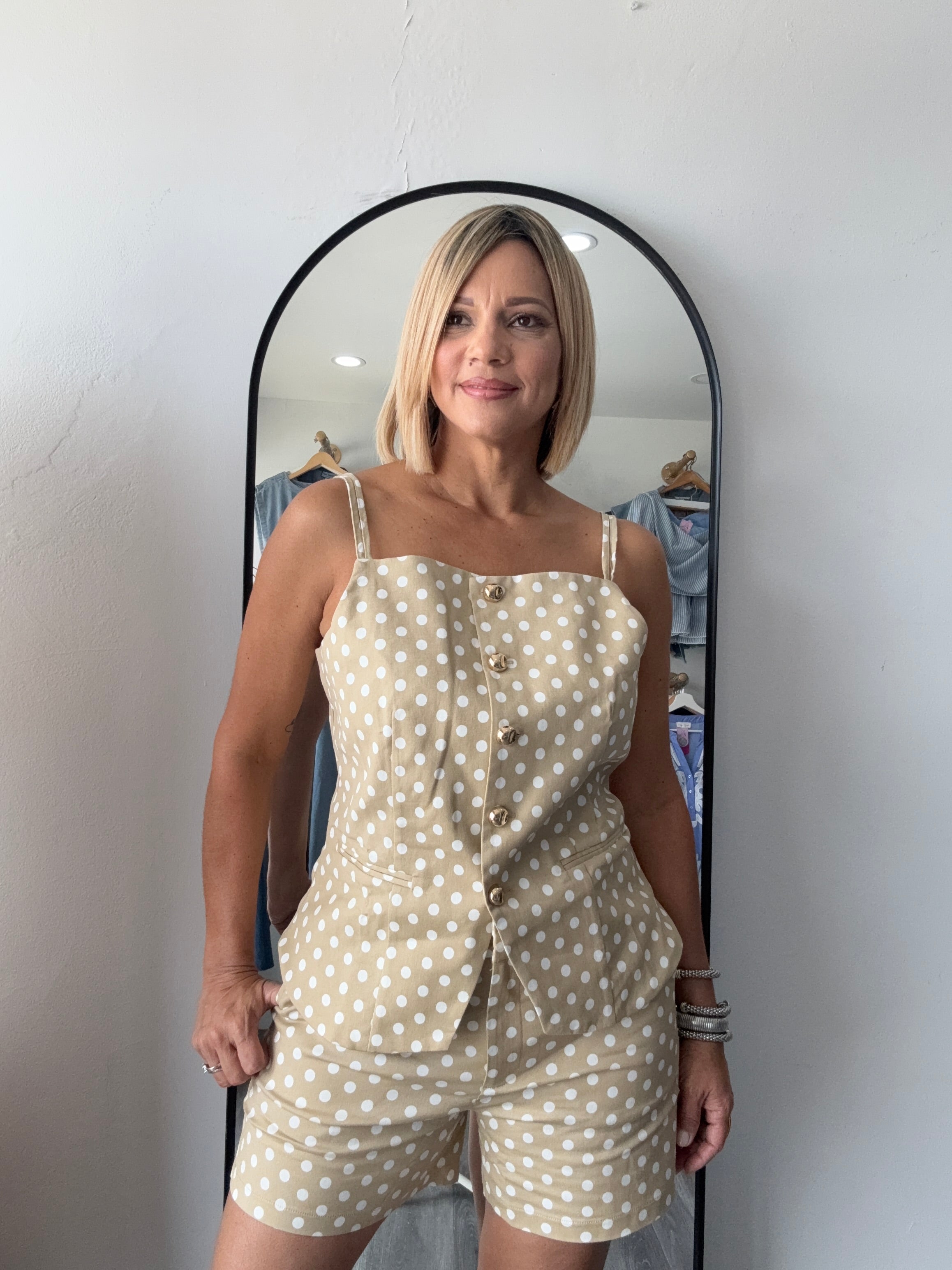 beige denim set